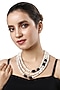 Featuring a white finish mala necklace studded with kundan polki, agates, onyx tumbles and shell pearls, set in brass.