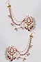 Hunar presents a pair of gold finish dangler earrings studded with attached kaan chain, moissanite polki, pearls, and red stones, set in 92.5 sterling silver. Elevate your style with our earrings & kaan chain set with any ethnic attire for a special occasion.