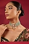 Hunar presents a gold finish choker necklace studded with kundan polki and emerald synthetic stones, set in brass. This set is a true testament to the artistry of India's rich cultural heritage, capturing the essence of regal opulence in every shimmering facet.