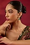 Hunar presents a pair of gold finish dangler earrings studded with kundan polki and emerald synthetic stones, set in brass. This necklace is a true testament to the artistry of India's rich cultural heritage, capturing the essence of regal opulence in every shimmering facet.