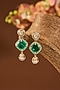 Gold Finish Kundan Polki & Emerald Stone Dangler Earrings