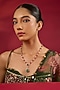 Hunar presents a gold finish long necklace studded with kundan polki and emerald synthetic stones, set in brass. This set is a true testament to the artistry of India's rich cultural heritage, capturing the essence of regal opulence in every shimmering facet.