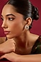 Hunar presents a pair of gold finish stud earrings studded with kundan polki and emerald synthetic stones, set in brass. This necklace is a true testament to the artistry of India's rich cultural heritage, capturing the essence of regal opulence in every shimmering facet.
