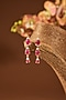 Hunar presents a pair of gold finish dangler earrings studded with kundan polki and ruby synthetic stones, set in brass. This set is a true testament to the artistry of India's rich cultural heritage, capturing the essence of regal opulence in every shimmering facet.