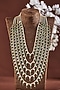Hunar presents a gold finish long layered necklace studded with moissanite polki green stone, beads, and pearls, set in 92.5 sterling silver. Elevate your style with our necklace with any ethnic attire for a special occasion.