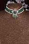 Gold Finish Moissanite Polki & Green Stone Choker Necklace In Sterling Silver