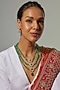 Featuring a gold finish layered necklace studded with moissanite polki and green stone, set in 92.5 sterling silver. It is paired with a matching pair of earrings. Perfect wear for festive occasions or wedding ceremonies.