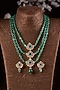 Gold Finish Moissanite Polki & Green Stone Layered Necklace Set In Sterling Silver