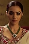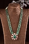 Featuring a gold finish long necklace studded with moissanite polki and green stones, set in 92.5 sterling silver. Perfect wear for festive occasions or wedding ceremonies.