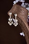 Hunar presents a pair of gold finish dangler earrings studded with moissanite polki and pearls, set in 92.5 sterling silver. These earrings are a true testament to the artistry of India's rich cultural heritage, capturing the essence of regal opulence in every shimmering facet.