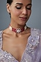 Gold Finish Moissanite Polki & Red Stone Choker Necklace In Sterling Silver