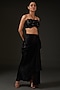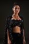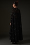 Featuring a black cape in armani silk satin base. It is paired with a blouse and a draped skirt. Style it with statement earrings, soft curls and block heels for a festive occasion, wedding or sangeet ceremony.