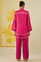 Featuring a hot pink shirt in linen satin base with applique, sequins and pearl work. It is paired with pants. Style it with statement earrings, soft curls and block heels, perfect for an evening look.