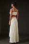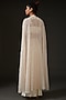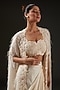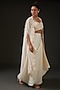 Featuring an ivory cape in armani silk satin base. It is paired with a blouse and a draped skirt. Style it with statement earrings, soft curls and block heels for a festive occasion, wedding or sangeet ceremony.