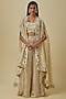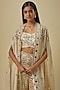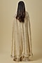 Featuring an ivory gold dupatta styled cape in silk shantoon, japanese silk satin and hard net base. It is paired with a blouse and palazzo pants. Accentuate it with statement jhumkas and block heels for a radiant, festive ensemble, ideal for cocktail nights or pre-wedding ceremonies.