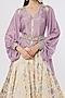 Featuring an ivory lehenga in silk blend base with floral hand print and hand embroidery. It is paired with a contrasting Shirt and a belt.