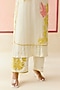 Featuring an ivory layered kurta in silk organza base with colorful floral applique work. It is paired with pants having mirrors and sequins work. Accentuate it with dangler earrings and heels for festive day events.