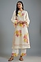 Featuring an ivory layered kurta in silk organza base with floral applique, mirror and sequins work. It is paired with pants. Accentuate it with statement jewellery and heels for a festive occasion,