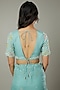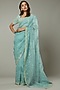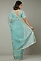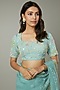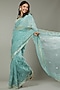 Featuring a peppermint candy saree in raw silk base with silk organza applique work, floral puzzle pattern cutdana and colourful sequins hand embroidery. It is paired with a matching raw silk embroidered blouse and a petticoat.