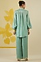 Featuring a mint shirt in linen satin base with applique, sequins and pearl work. It is paired with pants. Style it with statement earrings, soft curls and block heels, perfect for an evening look.