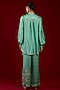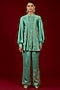 Featuring a mint shirt in linen satin base with floral and french knot embroidery. It is paired with pants. Style it with statement earrings, soft curls and block heels, perfect for an evening look.