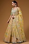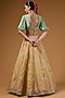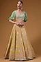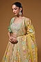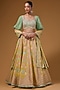 Featuring a mustard lehenga in silk zari blend base with floral hand print. It is paired with a green blouse having mirror and sequins hand embroidery, including a dupatta. Accentuate it with statement earrings and heels for weddings or haldi ceremonies.