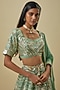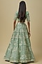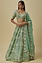 Featuring a sea green lehenga in hard net, japanese silk satin and silk shantoon base. It is paired with a blouse and a dupatta. Accentuate it with diamond jewellery and block heels for weddings, sangeet or engagement ceremonies.