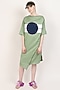 Featuring a military green maxi dress in cotton satin base with patch work. It has a front pouch belted pocket.
