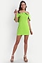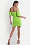 Featuring a green mini off-shoulder dress in polyester and spandex base.