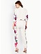 Featuring an off-white cropped top in terry cotton and polyester base with floral print and cuffed sleeves. It is paired with matching jogger pants.