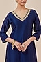 Featuring a blue kurta in chanderi silk base with hand and machine embroidery. It is paired with matching pants.