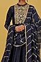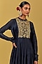 Featuring a blue anarkali in chanderi silk base with hand embroidery. It is paired with matching churidar pants and a chanderi dupatta.