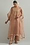 Featuring a dust pink kaftan in organza base with hand embroidery. It is paired with chanderi pants and a slip. Accentuate it with dangler earrings and heels for festive occasions.