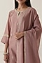 Featuring a dusty rose pink kurta in chanderi silk and tissue organza base with machine and hand embroidery. It is paired with matching palazzo pants and a dupatta.