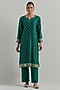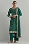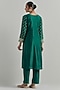 Featuring a green kurta in chanderi base with hand embroidery. It is paired with pants and a net dupatta. Accentuate it with pearl jhumkas and embellished juttis for an elegant traditional look, perfect for festive gatherings, mehendi and cultural celebrations.