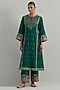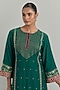 Featuring a green kurta in chanderi base with hand embroidery. It is paired with pants and a dupatta. Accentuate it with pearl jhumkas and embellished juttis for an elegant traditional look, perfect for festive gatherings, mehendi and cultural celebrations.