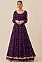 Featuring a purple anarkali in chanderi base with hand embroidery. It is paired with a skirt. Accessorize this designer anarkali set with a dupatta, a pair of heels and chandbali earrings for a festive or a pre-wedding look.