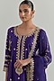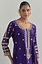 Featuring a purple kurta in chanderi base with hand embroidery. It is paired with pants and an organza dupatta. Accentuate it with pearl jhumkas and embellished juttis for an elegant traditional look, perfect for festive gatherings and cultural celebrations.
