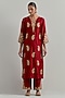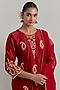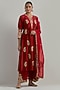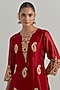 Featuring a red kurta in chanderi base with hand embroidery and a round neckline. It is paired with chanderi pants and an organza dupatta. Style this with polki jewellery and heels for a festive occasion or sangeet ceremonies.