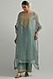 Featuring a sky blue kaftan in organza base with hand embroidery. It is paired with chanderi pants and a slip. Accentuate it with dangler earrings and heels for festive occasions.