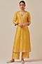 Featuring a yellow kurta in chanderi silk base with hand embroidery. Style this designer kurta with pants, a dupatta, ethnic dangler earrings and juttis for festive occasions or pre-wedding ceremonies.