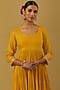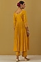 Featuring a yellow anarkali in cheese cotton base with embroidery and lace detailing. It is paired with matching pants. Style it with statement jewellery and heels for a festive or haldi ceremony.