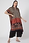Featuring a black hand dyed kaftan in silk pichwai base with tassel detailing on the neck. It is paired with matching pants.