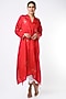Featuring a cadmium red kerchief tunic in dupion silk base with a V-neckline. This contains only one piece.