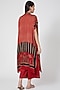 Featuring a red hand dyed kaftan in silk pichwai base with tassel detailing on the neck. It is paired with matching pants.