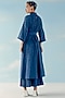 Featuring a smoke blue dress in cotton base with smocked, gathered pom-pom, and thread embroidery.