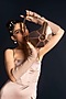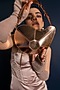 Featuring a rose gold handbag in rexine base with origami effects. It has a suede lining.