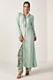 Featuring an aqua blue shirt style kurta in bemberg modal base. It is paired with cotton silk printed pants having crochet floral tassels. Style it with dangler earrings and heels for casual or office wear.