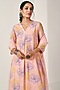 Featuring a blush pink kurta in cotton silk base with floral print and box pleat detailing. It is paired with striped pants and an organza dupatta. Style it with dangler earrings and heels for festive occasions.