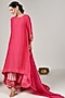 Featuring a hot pink high-low kurta in cotton silk base with polka print. It is paired with striped pants and an organza dupatta. Style it with dangler earrings and heels for festive occasions.